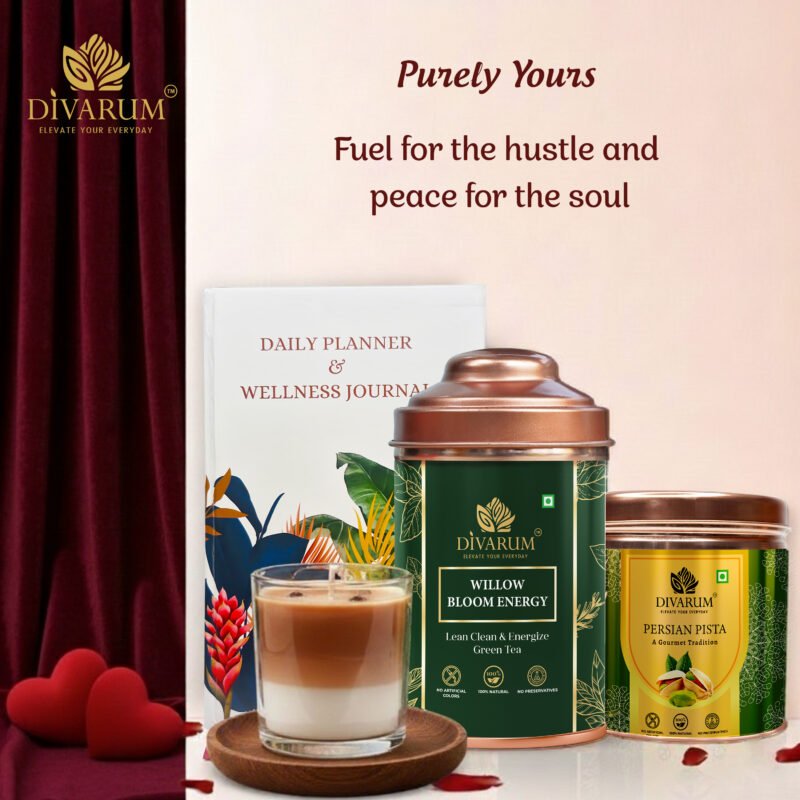 This self care gift box for men is designed to support both productivity and recovery. The green tea sharpens your focus, the journal organizes your thoughts, the candle creates a controlled environment, and the pistachios keep your energy stable.