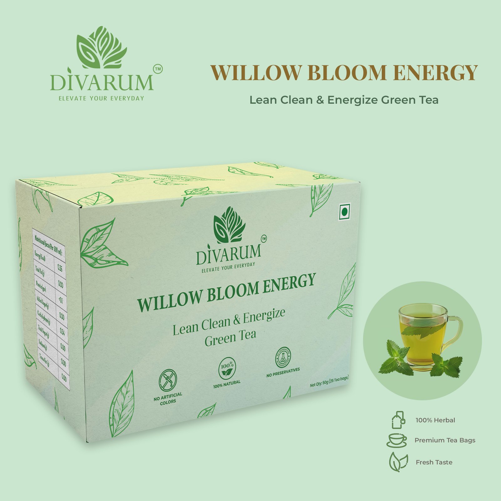 Willow Bloom Energy supports your daily routine with natural energy and a refreshing tea experience.